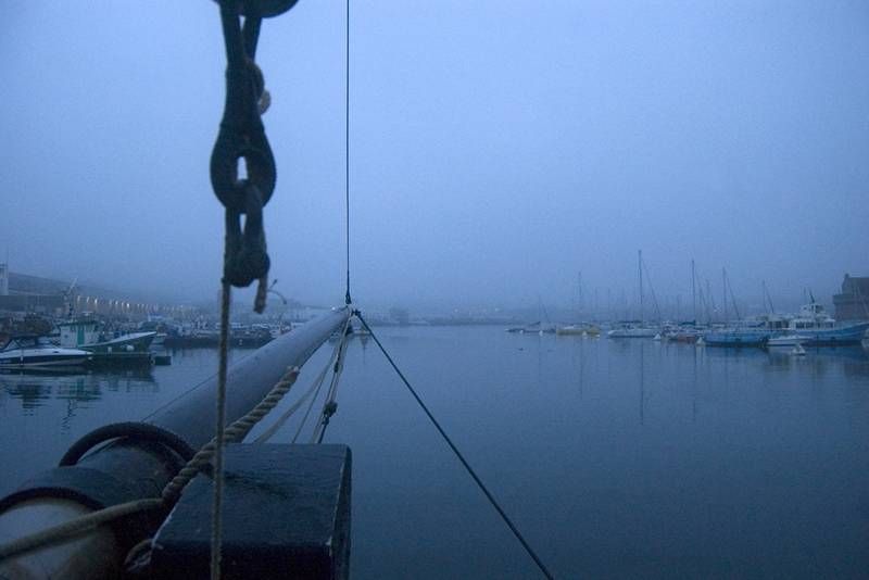 Il se redessine à chaque mile. Un autre horizon emplit à nouveau l'espace. Il ne peut pas être vu, filant lui aussi dans le temps d'une pensée, une expectative trop désirée, une nostalgie pas encore vécue. Une trop forte attache nous relie aux ports. Elle se délie au goût amer et vague de ce chagrin sans larmes qui nous a poussés là. Maintenant, loin de tout, après ou avant l'escale, le bateau, lui, il s'en fout. Et le bout-dehors se tend dans son prémisse de sillage. La mer est un miroir... Mais, s'il n'y a pas de figure à la proue, alors à quoi sert-il d'avoir le vent en poupe ? La finalité n'en tolère que peu l'importance. Il y a tant de reflets à l'instant que l'essentiel n'est jamais là où il voulait être attendu. Il s'octroie une pose dans ce défilement. Sans destination, il est passé à cet endroit, un moment, à l'étrave.