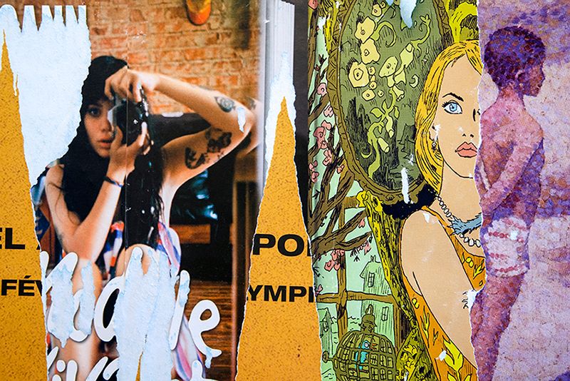 D'un autre abord, il y a la photographie de composition, dévoilant des paysages ou des tabloïdes dans la matière, la couleur, l'érosion, l'agencement « naturel » des affiches et des murs en déréliction. Une recherche qui veut sublimer un décors déliquescent, confronter à l'usure, dans une démarche proche du pictural.