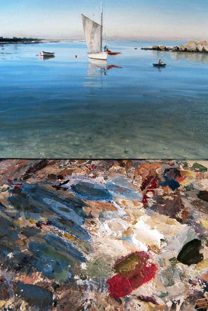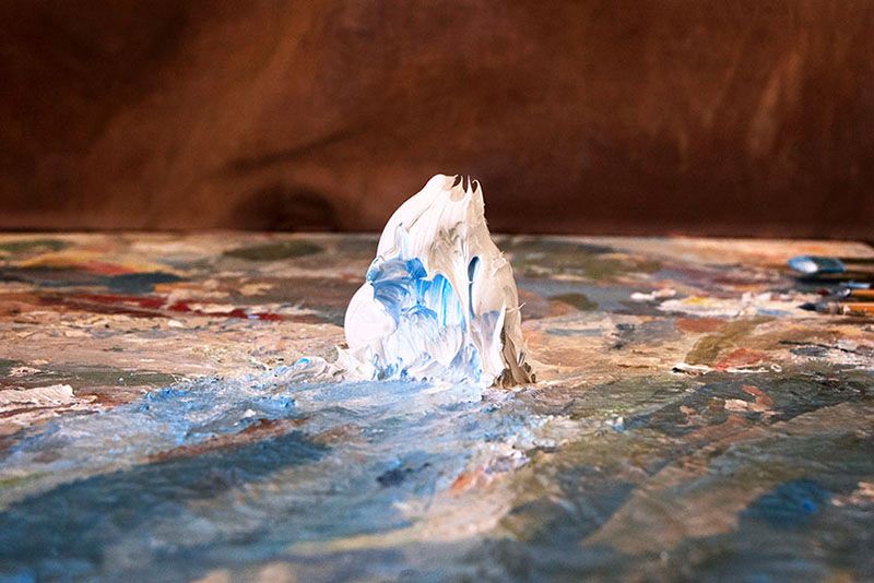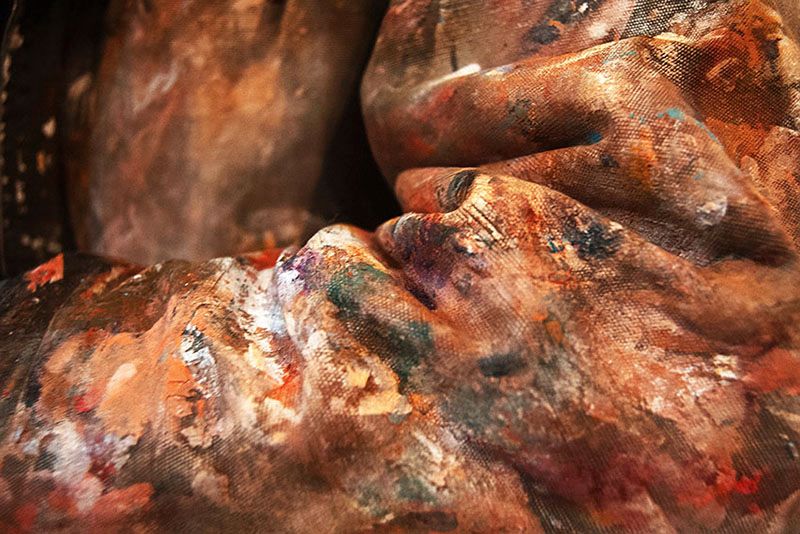 A la côte, d'autres voix se libèrent. Dans des ateliers d'artistes, le photographe rencontre la peinture. Ces lieux offrent en eux-mêmes un graphisme étonnant, jeu de lumières, couleurs en tous sens, capharnaüm et mouvements. Le regard s'interroge sur l’œuvre en latence, celle qui existe déjà bien avant qu'une toile ne s'ébauche, puis s'achève. La photographie peut, là, saisir l'idéel d'une pensée, créer seule ses tableaux suspendus dans l'atmosphère. Comme un amour transcende, les détails révèlent déjà l'abstraction de leurs paysages. Les palettes dansent et se dévoilent à l'objectif, modèles de l'instant.